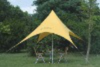 outdoor pyramid sun shade tent open size: 4m*4m*3.3m, Stand pole ,with powder coating,polyester 160g/m2 high density,PA Coating ;4PCS DIA6mm*3m Ropes,4pcs dia5*200 mmcorkscrew stakes Packing:polyester carry bag,side with PVC Small bag,insert the color label